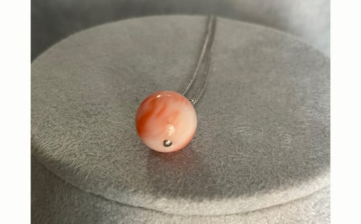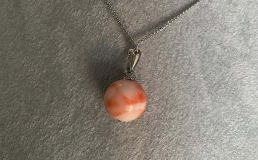深海珊瑚(カラーグレード:2.5)丸玉:11.3mm、重量:2.2g、金具:シルバー、真鍮チェーン:全長47cm、貫通玉