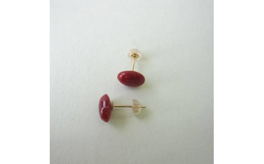 高知産血赤珊瑚(カラーグレード:4.5):8.8mm×6.5mm、厚さ:約3.8mm、金具:K18