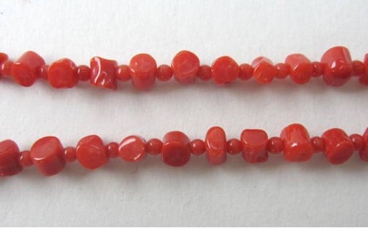 イタリア産赤珊瑚(カラーグレード:3.5):約3mm×3mm~5mm×4.5mm、丸玉:約2mm、