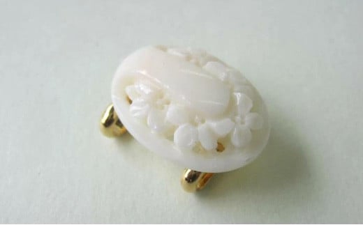 ミッド珊瑚(カラーグレード:1):16.6mm×23.3mm、厚み:約6.6mm、金具:真鍮