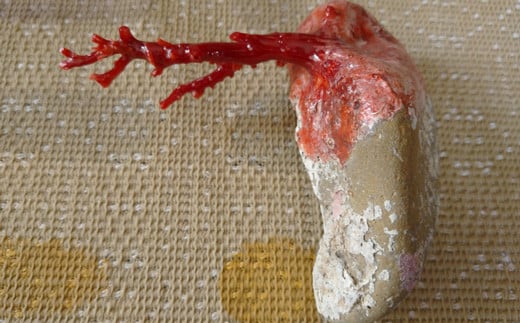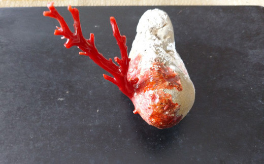 土佐沖血赤珊瑚(カラーグレード:5):70mm×25mm、根本の大きさ:約8mm、全体:100mm×95mm(石込み)、