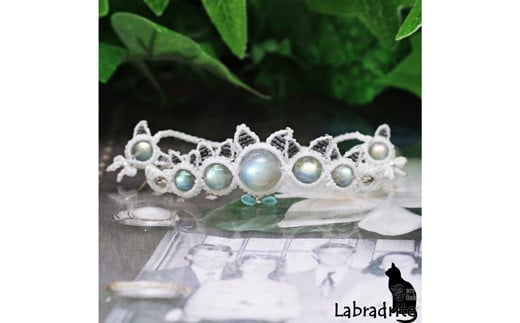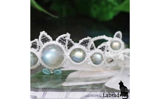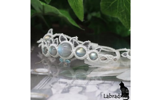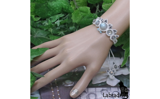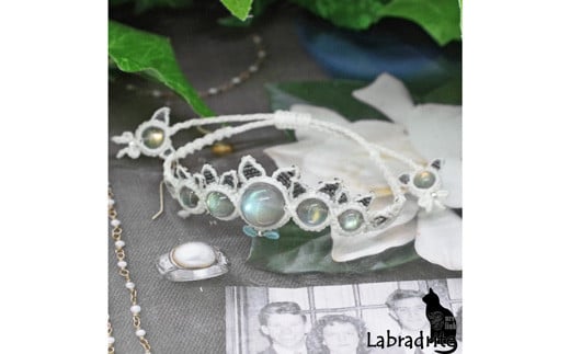 7匹の猫達『ラブラドライト』猫耳マクラメ編みニャンコブレスレット(055)