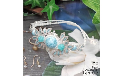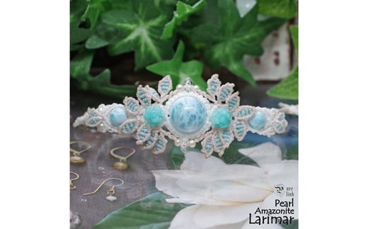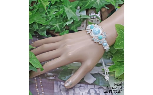 愛と平和を表す魔石『ラリマー』、希望をもたらす魔石『アマゾナイト』、人魚の涙…『パール』などを使用し作成したブレスレットです!『ラリマー』は…ヒーリング効果が高い石とされ、美しいだけではなく強い力を認められた3大ヒーリングストーンの一つでもあります。その癒しの力は、持つ者の怒りや憎しみなど負の感情から解放しいたわりなどの他者への愛、自分への愛を育くみ心の平穏をもたらしてくれると云われます。『アマゾナイト』は…古くから、希望をもたらす石と言われマス。また、自分の感情や気持ちを相手に上手く伝えることが出来る、コミュニケーション能力を高めてくれる石と云われています。その他にも、心を休めるなど精神的に安らぎを与えるとともに肉体的な疲労も回復してくれるヒーリングストーンでもあります。『パール・真珠』は…人類が最初に出会った宝石と言われる程古く馴染み深い宝石です。また、他の宝石のように人が手を加えなくても、そのままの姿ですでに美しさを備えている宝石です!その為、神話や昔話などにも出てくる石です。時には神の涙・人魚の涙・月のしずくなど、そんなロマンチックな石であり、その力は邪気を払い異性の心を引きつける恋の宝石とも言われています。なお、今回出品させていただいたのは美しい白色の『フレッシュウォーターパール』(淡水真珠)です。そして、中央には14mm玉の反面は半透明の美しいアイス『ラリマー』、そしてその左右側面には、愛を象徴する花『薔薇』の形に彫刻された『アマゾナイト』や『パール』を使用し、エデンの園の中央に植えられた木『Tree of Life/生命の樹』をイメージして、見た目だけでなく頼もしいお守りにもなるように、願いを込め丁寧に編んで作成した、サイズ調整も可能な当ショップオリジナルのハンドメイドマクラメ編ブレスレットです。マクラメ編みは、身に着けてくれる方に、より石の力を伝えれるように、幸運を運んでくれるように願いを紡ぎながら作成しています。作成にはデザインを考え編み込むとなると数時間以上はかかりそれ以上時間のかかる場合もあります。是非、手に取ってマクラメ編みの良さを感じていただければ幸いです。因みに、青薔薇の花言葉は、青いバラなど無いことから『かなわぬ望み』でしたが、『サントリー』がバイオテクノロジーを駆使して『青い薔薇』を作ったこともあり『神の祝福』となったそうです!!