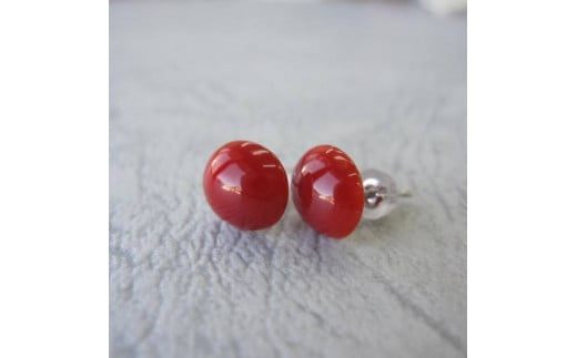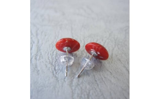 高知産血赤珊瑚(カラーグレード:4):約9.1mm×7.9mm、厚さ:約4mm、金具:K14WG