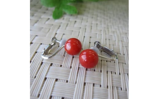 高知産赤珊瑚(カラーグレード:3.5):7.8mm玉、金具:K14WG、ネジ・バネ式