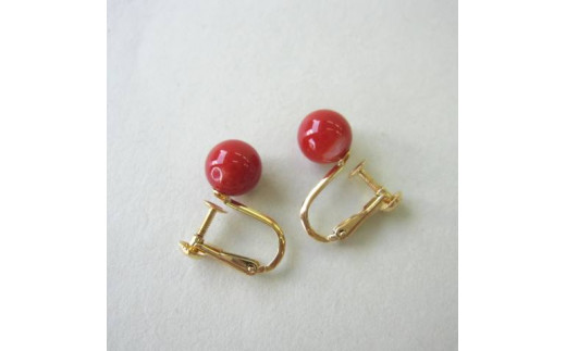 高知産赤珊瑚(カラーグレード:3.5):7.7mm玉、金具:K18