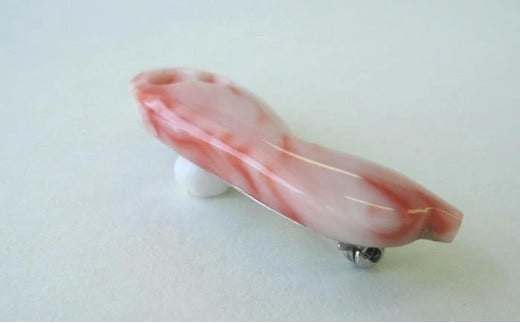 ピンク珊瑚(カラーグレード:2):16.8mm×49.6mm、厚み:約7.3mm、金具:真鍮裏張り