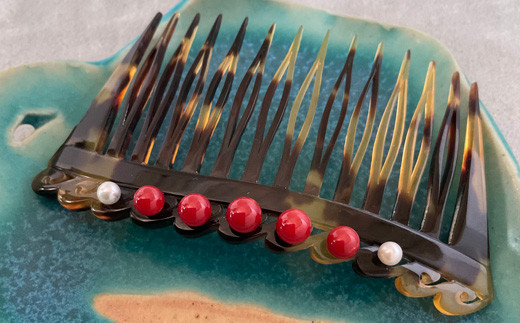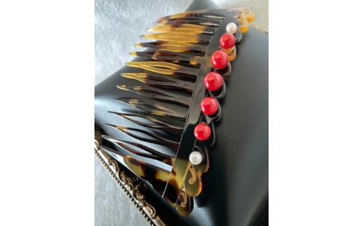 本べっ甲足:90mm×48mm、全重量:6.6g、留め具:K18