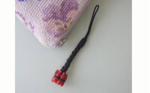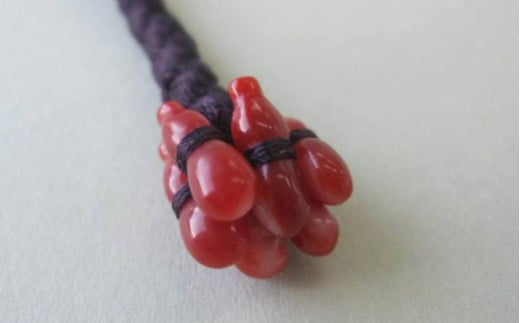 高知産血赤珊瑚(カラーグレード:4)六瓢箪:直径約12.5mm、紐:正絹(紫)