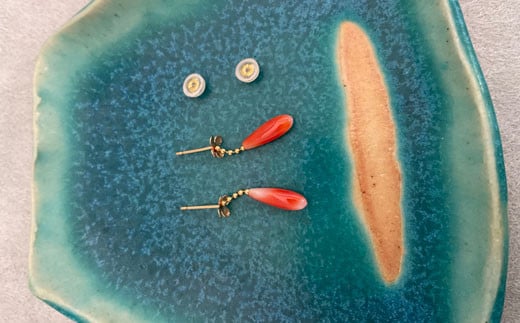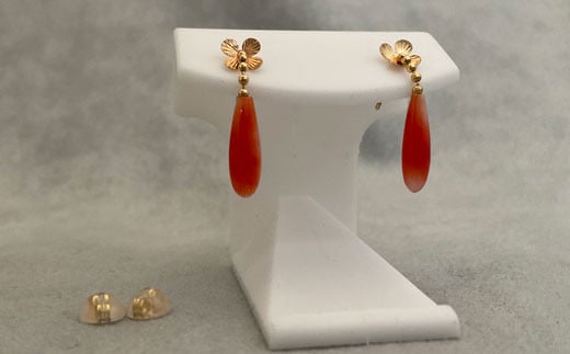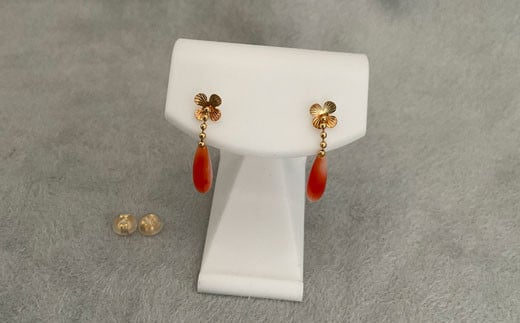 赤珊瑚(カラーグレード:1~2):13mm×3.5mm、全重量:0.7g、金具:K18