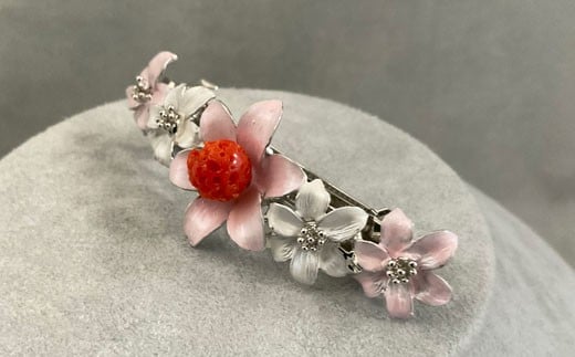 赤珊瑚(カラーグレード:1)す玉:9mm(1ケ付)、全長:7cm×2.6cm、全重量:10g、金具:真鍮、薄ピンクと白のアクリルカラー付き