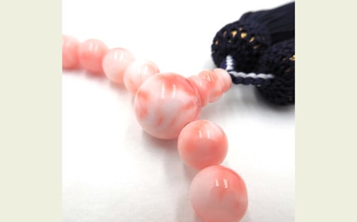深海珊瑚(カラーグレード:3) :約8.5mm~8.75mm玉、生絹房、数珠袋付き(数珠袋は選べません)