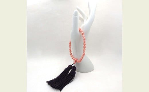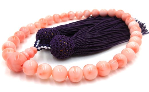 深海珊瑚(カラーグレード:3) :約7.75mm~8.0mm玉、生絹房、数珠袋付き(数珠袋は選べません)