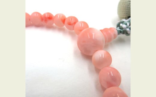 深海珊瑚(カラーグレード:3) :約7.0mm~7.25mm玉、生絹房、数珠袋付き(数珠袋は選べません)