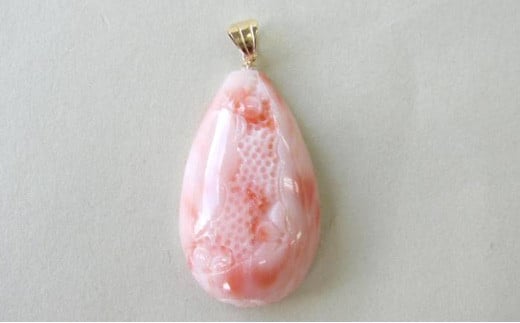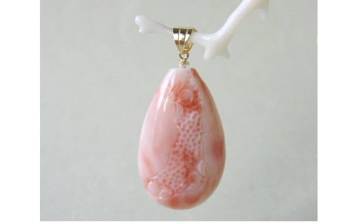 ピンク珊瑚(カラーグレード:3):約W17.7mm×H29.2mm、厚さ:約7.3mm、金具:K18(チェーンは付いていません。)