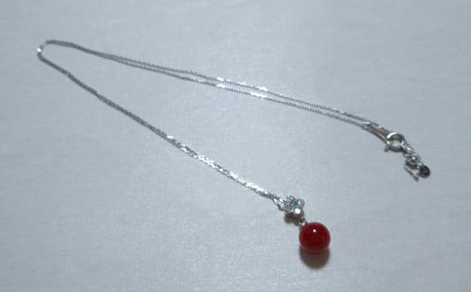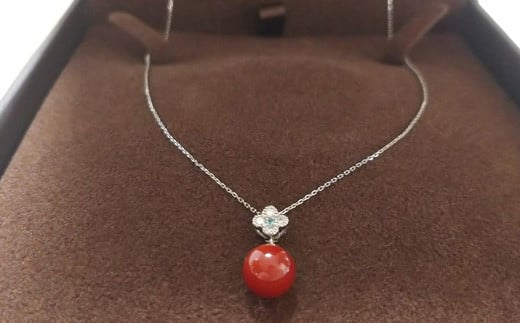 血赤珊瑚(カラーグレード:5):7.1mm玉、ダイヤ:0.1ct、パライバ、金具:Pt900、