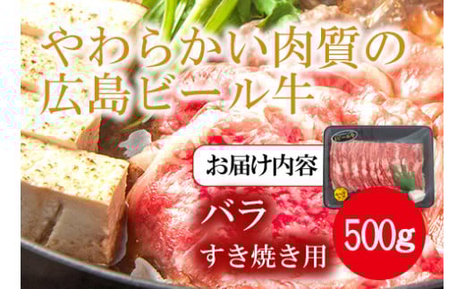 東広島で育成されたビール牛 バラ肉(すき焼き用)500g