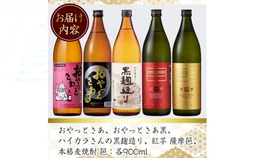 ≪本格芋焼酎・麦焼酎≫岩川特選焼酎飲み比べ(各900ml×5本) 芋焼酎 麦焼酎 飲み比べ【岩川醸造】A50-v01
