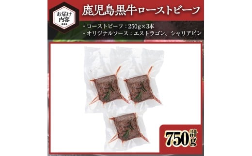 <7日以内発送><ローストビーフ・250g×3本>鹿児島黒牛ローストビーフ(計750g・オリジナルソース付き) ローストビーフ ソース付き 冷凍【黒牛】D47