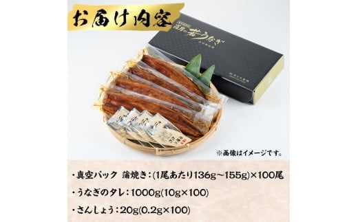真空パック蒲焼き(1尾あたり136g~155g)×100尾