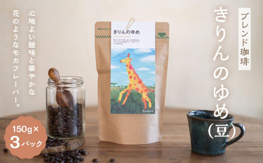 【ブレンド珈琲 きりんのゆめ(豆)3パック】エチオピアブレンド。心地よい酸味と華やかな花のようなモカフレーバー。