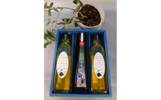 小豆島産エキストラバージンオリーブオイル”味咲”1本とスペイン産ピュアオリーブオイル2本/ 合計3本セット