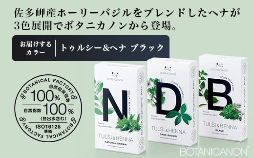 トゥルシー&ヘナ ブラック(染毛料)ホホバオイル付き BF-4|ヘナ 染毛料 ブラック ヘアケア 髪 頭皮 キューティクル ボタニカノン BOTANICANON ケミカルフリー 鹿児島県 南大隅町 ボタニカルファクトリー