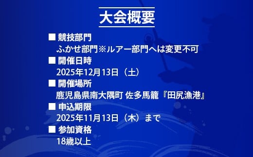 第3回南大隅町黒潮カップ㏌佐多岬≪ふかせ部門≫出場権権利1名分