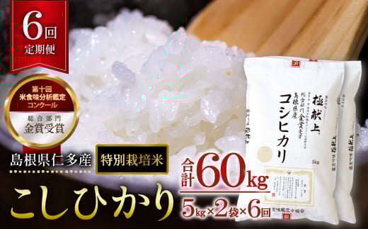 【先行予約】島根県仁多産コシヒカリ特別栽培米10㎏定期便6回【新米 2025年度産 令和7年度産 仁多米 コシヒカリ 特別栽培米 定期便 10kg 6回 合計60kg ブランド米 お米 米 精米 白米 人気 金賞受賞 安全 安心】