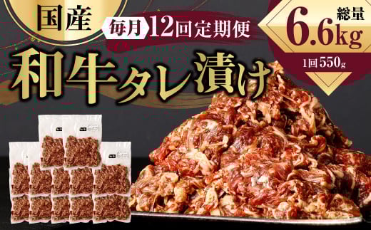【12ヶ月定期便】 国産和牛 タレ漬け 合計550kg 550g×1袋 ×12回 総計6.6kg 牛肉 肉 小間切れ コマ切れ 炒め物 冷凍 たれ タレ 漬け  焼くだけ 簡単調理 定期便 12回 国産 熊本県 水俣市