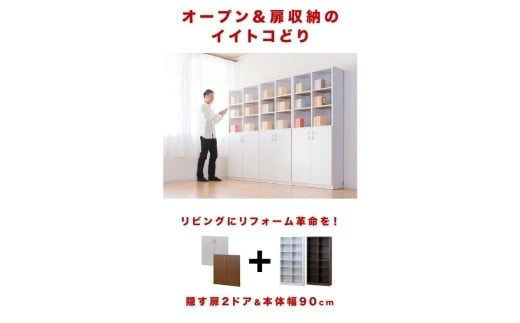 シェルフ 幅90 高さ180 本棚 扉2枚セット ブラウン aku100446602