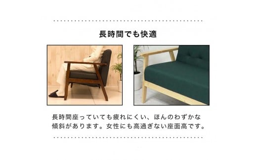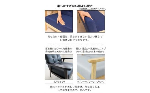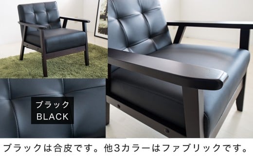 背もたれ・座面は、柔らかすぎない程よい硬さで日常使いにぴったりの一人掛けソファです。天然木の木目が美しい肘掛け。角は丸く加工しており安心です。PVC素材のブラックは、酸、油、アルコールに耐性があり、耐水性がよいので、アルコール除菌スプレーでお手入れすることができます。床からソファ下の高さは約19cm。ロボット掃除機も入る高さです。背もたれの角は比較的傷みやすい箇所ですが、しっかりとした縫製で永くご愛用いただけます。木枠のネジ穴は、付属のキャップを取り付けることでで目立たないように気配りしています。キズ防止のためにフェルトを貼っています。