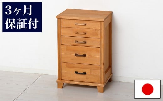 チェスト 5段 約幅40×奥行30×高さ61.5cm ライトブラウン 五段 引出し 5杯 国産 天然木 脚付き シンプル 北欧 日本製 天然木5段チェスト AKU104413501
