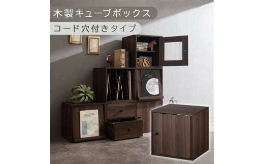 【完成品でお届け】木製キューブボックス〔幅35cm・コード穴付きタイプ〕(ウォールナット)キューブボックス 収納棚 幅35cm 連結 木製 スタッキング フラップボックス LKANRA001163-10-WAL