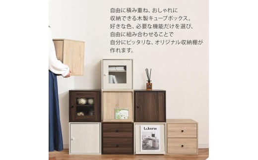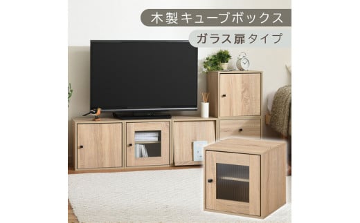【完成品でお届け】木製キューブボックス〔幅35cm・ガラス扉タイプ〕(オーク)キューブボックス 収納棚 幅35cm 連結 木製 引き出し 扉付き 収納ボックス 本棚 フラップ扉 チェスト キューブ ラック スタッキング フラップボックス LKANRA001163-6-OAK