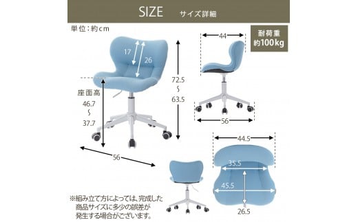 【完成品でお届け】デスクチェア(ブルー)デスクチェア メッシュ 背もたれ 低い チェア クッション オフィスチェア コンパクト 昇降 肘なし 椅子 キャスター付き パソコンチェア 肘掛けなし 回転 CKANHR100239-0-BL