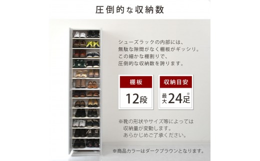 【完成品でお届け】シューズボックス ミラーなし幅45cm(ダークブラウン)シューズラック 扉付き スリム 12段 靴箱 大容量 木製 シューズボックス 縦長 靴収納棚 下駄箱 ブーツ おしゃれ SKANBM314500-0-DBR