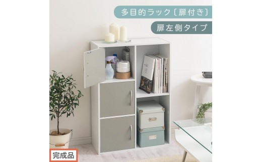 【完成品でお届け】多目的ラック〔扉付き・扉左側タイプ〕(グレー×ホワイト)2列 カラーボックス 2段 3段 扉付き A4 木製 雑誌 収納 収納棚 ラック 扉付きカラーボックス おしゃれ AKANBR920134-L-GY