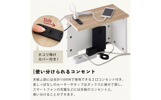 【完成品でお届け】ルーターボックス〔小・左置タイプ〕(ホワイト)ケーブルボックス 木製 コンセント 付き 収納 コードボックス コードケース コード収納 コンセントカバー 収納ボックス ケーブルラック EKANTC001539-0L-WH
