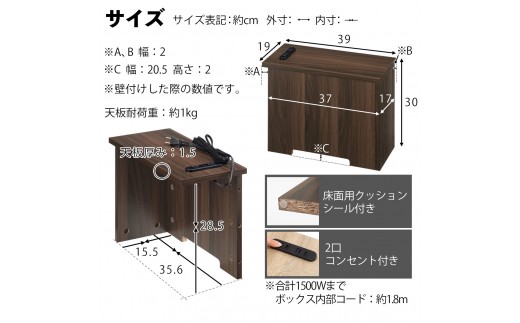 【完成品でお届け】ルーターボックス〔小・右置タイプ〕(ウォールナット)ケーブルボックス 木製 コンセント 付き 収納 コードボックス コードケース コード収納 コンセントカバー 収納ボックス ケーブルラック EKANTC001539-0R-WAL