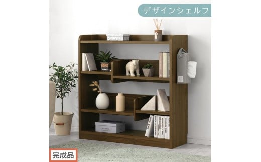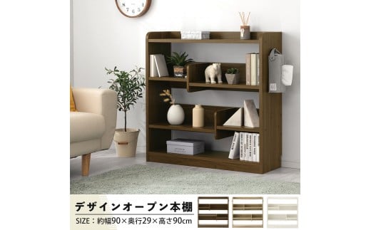 【完成品でお届け】デザインシェルフ(ウォールナット)オープンラック 木製 本棚 スリム コンパクト 大容量 ラック 幅90 奥行29cm ランドセルラック 棚 cd dvd オープンシェルフ リビング LKANCB642266-0-WAL