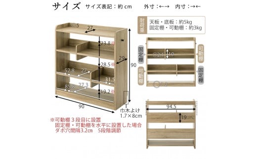 固定棚・可動棚:約3kg(1枚あたり)