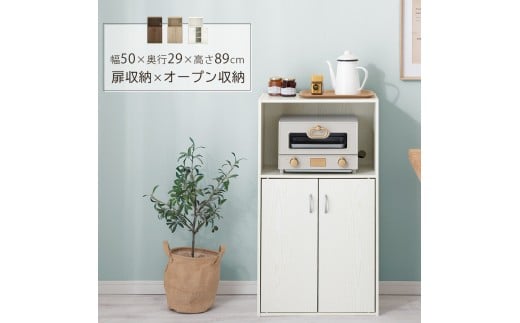 【完成品でお届け】扉付き収納ラック(オーク)食器棚 ロータイプ 完成品 あり 扉付き ラック キッチン収納 キッチン収納棚 スリム キッチンラック 幅50 cm 木製 キャビネット 90 高さ 4段 KKANRA945064-0-OAK