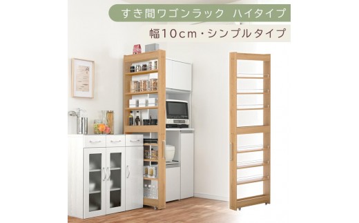【国産家具】すき間ワゴンラック ハイタイプ〔幅10cm・シンプルタイプ〕(オーク)隙間収納 キッチン キャスター付き キッチンワゴン スリム 収納 すき間収納 ランドリー ラック 薄型 木製 KRA945190-0-OAK