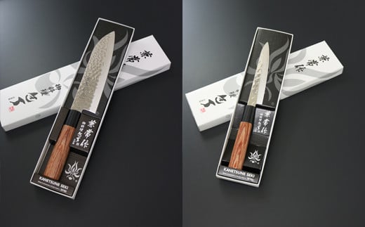 H28-04 兼常作 ステン1K6 鎚目磨き 赤合板丸柄 三徳&ペティナイフ 包丁セット ~和洋折衷 海外でも人気 関の刃物 KC-952 KC-954~