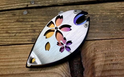 桜の花びらをモチーフとしたマネークリップ付きナイフ。