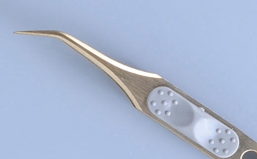 複雑な作業に最適な先曲がりのチタンコートピンセット。