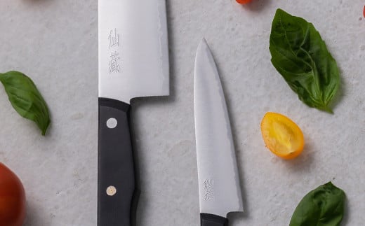 日本刀のような波紋が美しく切れ味のいい三徳包丁とペティナイフのセット