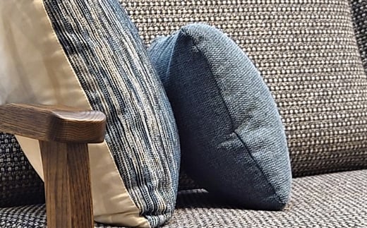 家具用張地の角クッションカバーにコシのあるクッションを合わせました。
