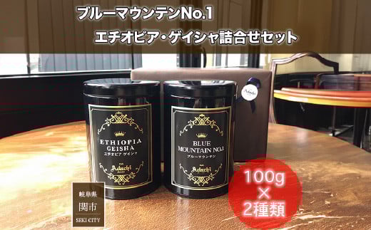 コーヒー豆 ブルーマウンテン エチオピアゲイシャ 100g (約10杯分)×2種類 <詰め合わせ> <ギフトセット> ~ カフェ・アダチ 自家焙煎 珈琲 (粉にもできます) 高級 ギフト ラッピング ドリンク